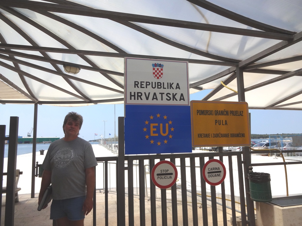 Da wir ja am Anfang unseres Urlaubs bei unserer Fahrt zum Hafenamt die Reisepässe vergessen hatten, holen wir das jetzt nach und gehen noch mal hin. Unterwegs in Pula treffen wir überall auf Polizei. Was das wohl alles zu bedeuten hat, wissen wir nicht.