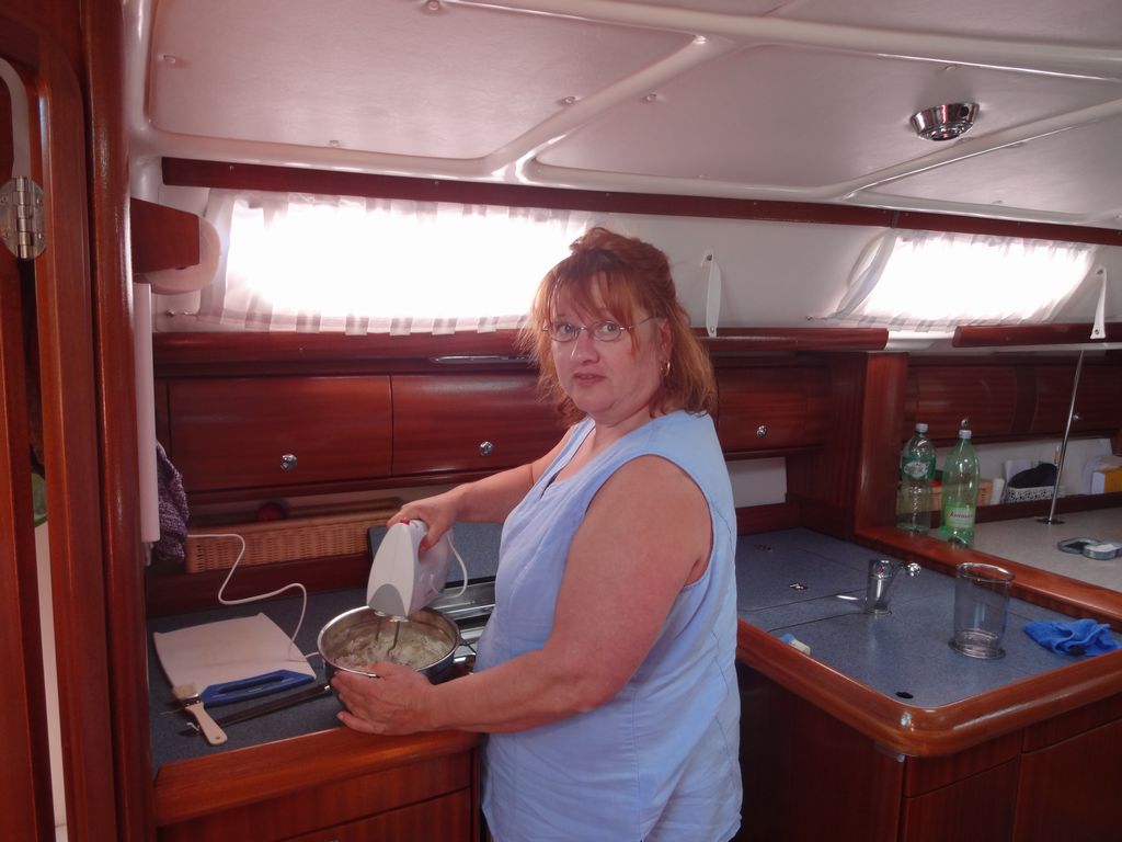 Ich habe ein Brot gebacken und einen Teil von der etwas aufgerissenen Vorsegelpersenning nach genäht.