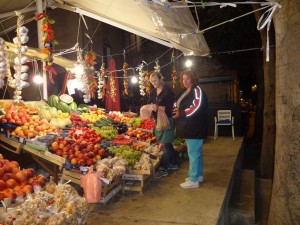 Dieses Naturprodukt wollten wir dann doch nicht, noch nie haben wir von so etwas gehört. Sie erklärt uns noch den Weg zu einem Arzt. Da gehen wir jetzt hin. Eigentlich ist es eine Ambulance, da ist aber ein normaler Arzt mit drin. Da wir nochmals an einer Apotheke vorbeikommen, fragen wir auch hier nach. Diese junge Frau hat außer den standard-Ohrentropfen nichts weiter im Angebot und empfiehlt uns gleich die Apotheke auf der anderen Seite der Bucht. Also marschieren wir erstmal weiter zum Arzt. In einem Seitengässchen werden wir fündig. Vor der Eingangstüre steht eine Dame mit Zigarette und sagt „wohin wollen sie?“ Wir erklären kurz. Dann antwortet sie „ das ist aber privat, da müssen sie alles bezahlen“. Diese Hinterhofpraxis sieht für uns nicht so einladend aus, deshalb gehen wir wieder. Da sah ja die Tierklinik gegenüber von der ersten Apotheke noch seriöser aus. Auf der anderen Seite des Hafens ist noch eine Apotheke, da probieren wir noch mal unser Glück. Hurra, es ist eine „richtige Apotheke“. Wolfgang erklärt seine Situation abermals. Auch hier werden erst einfache Tropfen angeboten, alles andere nur auf Rezept. Wir wollen nicht so richtig, dann spricht eine Kollegin dazwischen und Wolfgang bekommt welche mit Antibiotikum ausnahmsweise ohne Rezept. So, das wäre geschafft. Wir setzen uns auf eine Bank und ich träufle Wolfgang die Tropfen ins Ohr, dann können wir essen gehen. Wie die Geier auf ihre Beute, so sind die Bedienungen auf die noch wenigen Gäste. Wir entkommen den Rabatt-Fallen einiger Wirte und wählen das Lokal Nostromo wo man uns nicht so aufdringlich reinziehen möchte. Es war eine gute Wahl, es schmeckte hervorragend, zum bestellten Menü bekamen wir noch kostenlos Vorspeise, Nachspeise und Schnaps und teuer war es auch nicht. Nach dem Essen laufen wir noch mal den Berg etwas hoch, wo es den riesigen Obst und Gemüsestand gibt und kaufen dort noch herrlich schmeckendes Obst.