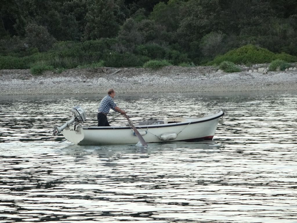 Jetzt auf Abend kommen am Ufer von überall Fischer angelaufen. Sie parken ihre Boote hinter einer Steinmauer und man kann sie von unserer jetzigen Richtung aus nicht sehen. Nacheinander tuckern oder rudern sie raus aufs Meer.