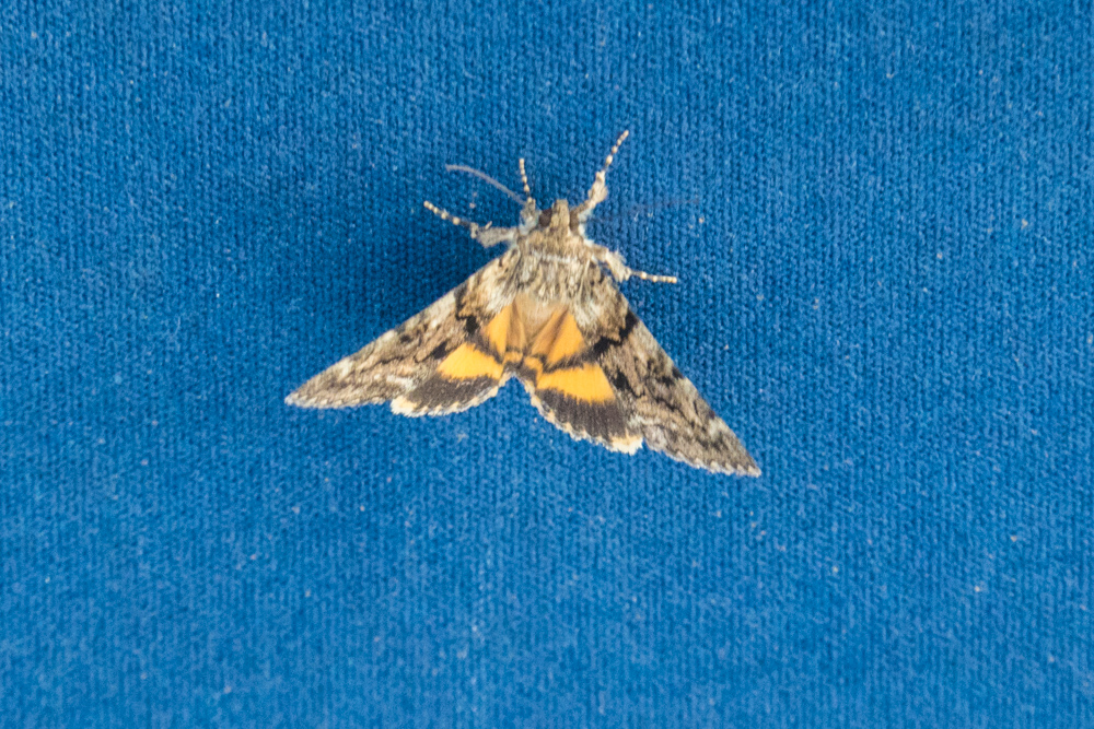 Später erblicke ich einen blinden Passagier. Am Bimini hängt eine Motte und muss jetzt mit uns eine Reise antreten. Sie versucht sich in einer dunklen Ecke hinter einem Reißverschluss zu verstecken.