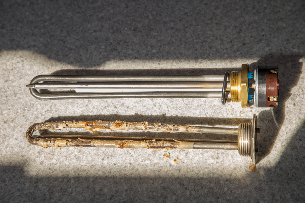 Nun beginnen wir die Operation Heizstab vom Heißwasserboiler. Wolfgang hat den alten Heizstab sehr schnell ausgebaut. Dieser sieht ziemlich übel aus. Total verkalkt.