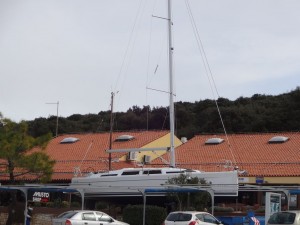 Jetzt eile ich noch vor ins Marinabüro um die Post für unsere kleine Isabella abzugeben. Ich beeile mich wirklich, denn statt Regen haben wir jetzt Bora und die bläst so stark, als wolle sie einem die Haare vom Kopf pusten. Deshalb fahren die Boote bei uns heute auch an Land.