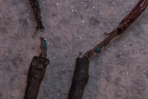 Nach öffnen des Inverters kann man sehen, dass die Kabel an der Überlastsicherung durchgeschmort sind. Aber leider kommt man da ganz schlecht hin, sodass der Inverter ausgebaut und komplett zerlegt werden muss. Nachdem das defekte Kabel ausgebaut ist, bemerken wir, dass wir diesmal leider die Schachtel mit den Flachsteckern nicht dabei haben.