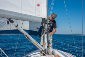 Wolfgang bemerkt dass an der obersten Spitze das Großsegel, wegen einer kleinen Falte nicht ganz ausgerollt ist.